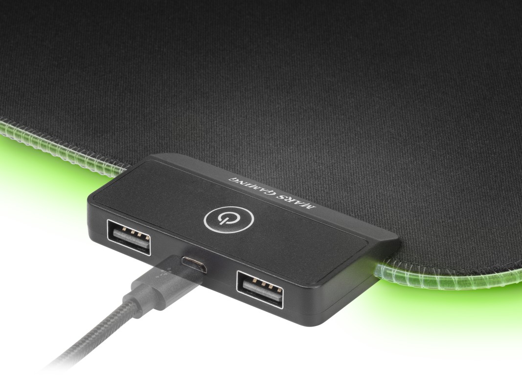 Mars Gaming MMPRGB2. Ancho: 800 mm, Profundidad: 300 mm. Color del producto: Negro, Coloración de superficie: Monótono, Material: Caucho. USB con suministro de corriente. Color de luz de fondo: Rojo/Verde/Azul, Base antiderrapante, Alfombrilla de ratón para juegos