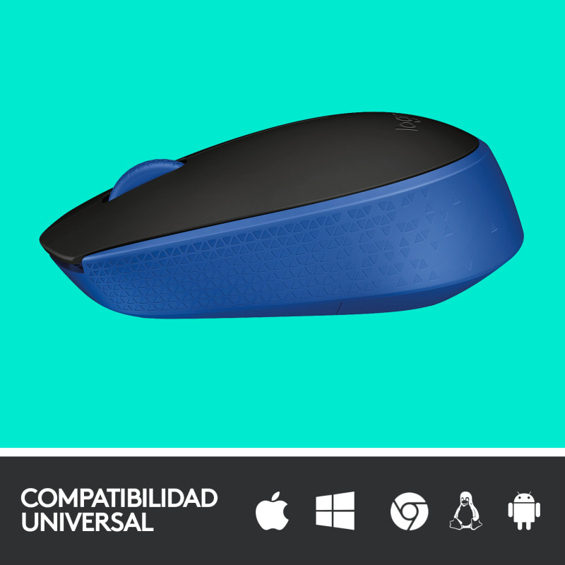 Logitech M171 - Ratón - diestro y zurdo - inalámbrico - 2.4 GHz - receptor inalámbrico USB - negro, azul