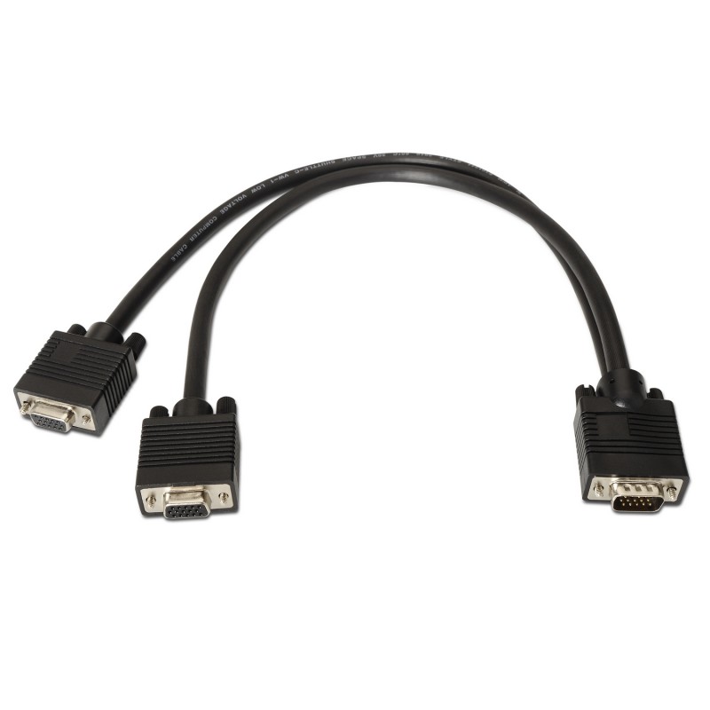 AISENS A113-0081. Longitud de cable: 0,45 m, Conector 1: VGA (D-Sub), Conector 2: 2 x VGA (D-Sub). Peso: 160 g, Ancho del paquete: 180 mm, Profundidad del paquete: 210 mm