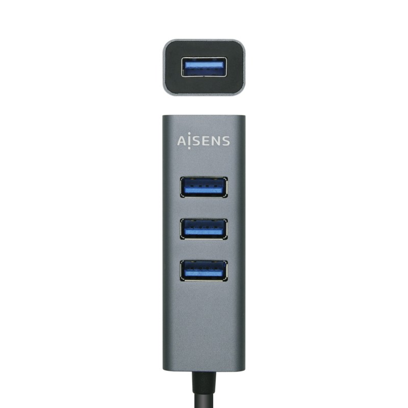 AISENS Hub USB 3.1 USB-C, USB-C/M - 4x Tipo A/H, Gris, 15 cm