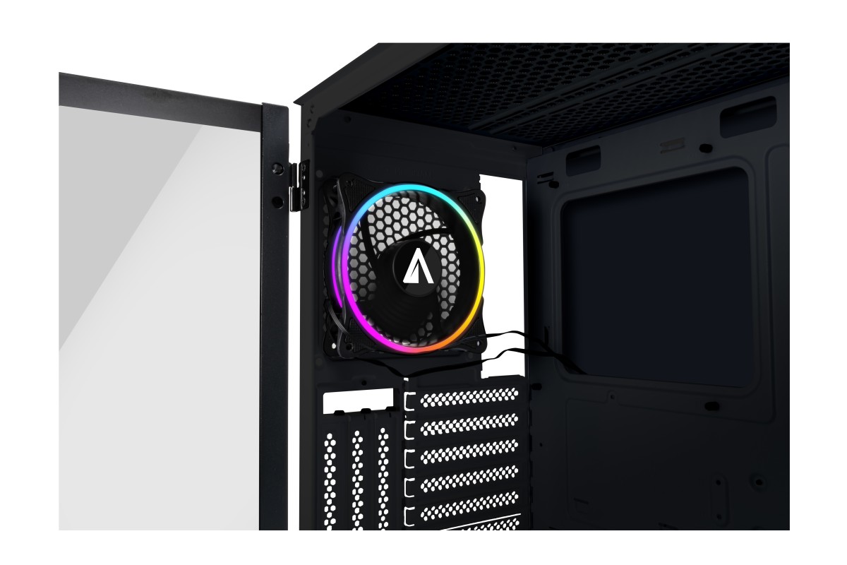 ABYSM Danube Kamp Black. Factor de forma: Torre, Tipo: PC, Color del producto: Negro. Ubicación de fuente de alimentación: Fondo. Ventiladores frontales instalados: 3x 120 mm, Diámetro de ventiladores frontales soportados: 120,140,200 mm, Ventiladores traseros instalados: 1x 120 mm. Tamaños de disco duro soportados: 2.5,3.5". Ancho: 233 mm, Profundidad: 462 mm, Altura: 408 mm