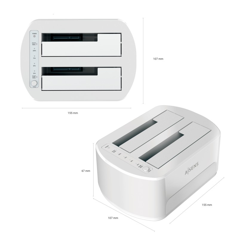 Mayoristas, proveedores y distribuidores de AISENS Estacion de Docking de Doble Bahia ASDS-D02W SATA 2.5/3.5 a USB 3.0/3.1 Gen1, Clone, Blanca