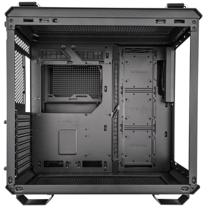 ASUS TUF Gaming GT502. Factor de forma: Midi Tower, Tipo: PC, Color del producto: Negro. Diámetro de ventiladores traseros soportados: 120 mm, Diámetros de ventiladores superiores soportados: 120,140 mm, Tamaños compatibles con el radiador trasero: 120 mm. Tamaños de disco duro soportados: 2.5,3.5". Ancho: 285 mm, Profundidad: 450 mm, Altura: 446 mm