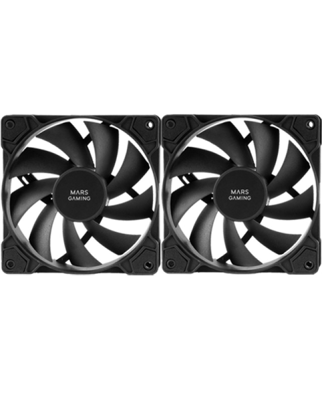 Mars Gaming MF-PWMX2 Negro, Kit 2 Ventiladores 120mm, Ultra silenciosos FDB 12dB, Sistema Anti-vibraciones, Sistema PWM. Tipo: Ventilador, Diámetro de ventilador: 12 cm, Tipo de soporte: Hidráulico. Color del producto: Negro