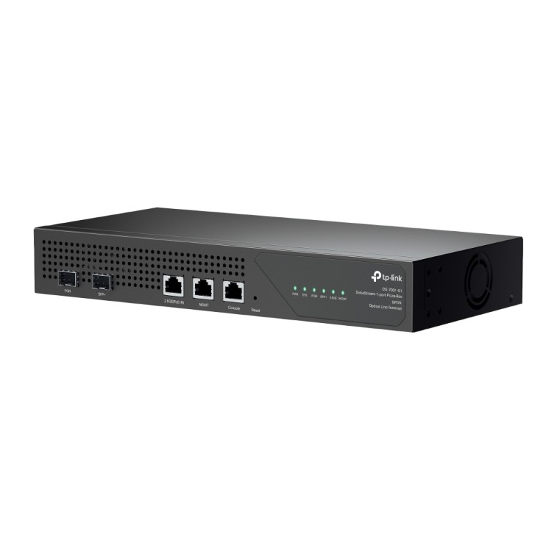TP-Link DS-P7001-01. Distancia lógica máxima (GPON): 60000 m. Puertos ascendentes: 10G Ethernet. Consumo de energía (max): 17 W. Ancho: 294 mm, Profundidad: 140 mm, Altura: 44 mm