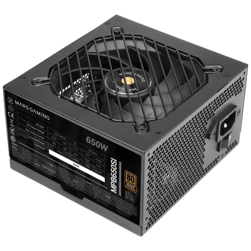 Mars Gaming MPB650SI, Fuente Alimentación PC ATX 650W, 7 Años Garantía, 80Plus Bronze 230V, 90% Eficiencia, Ventilador SI Extreme Silence con Núcl