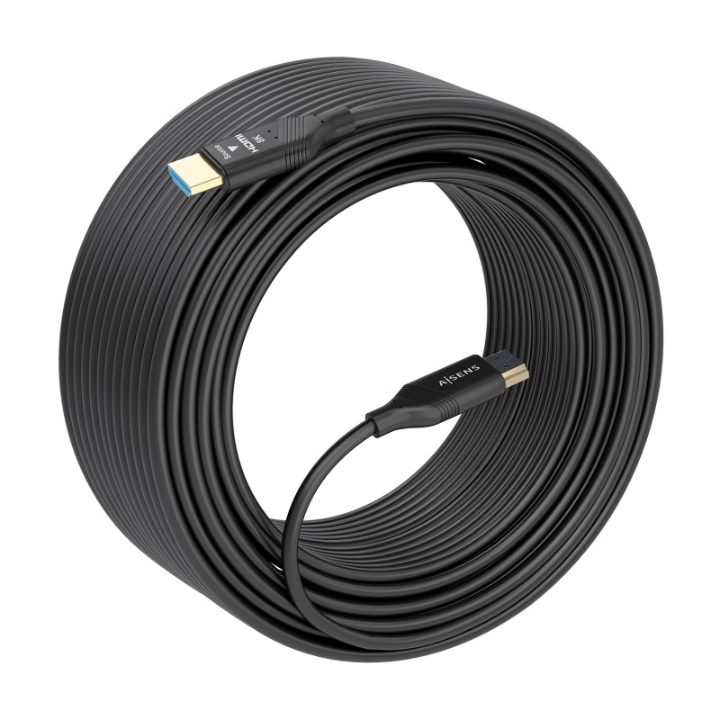 AISENS A153-0936. Longitud de cable: 25 m, Conector 1: HDMI tipo A (Estándar), Género del conector 1: Macho, Conector 2: HDMI tipo A (Estándar), Género del conector 2: Macho, Contactos del conector chapado: Oro, Versión HDMI: 2.1, 3D, Velocidad de transferencia de datos: 48 Gbit/s, Canal de retorno de audio (ARC), Color del producto: Negro