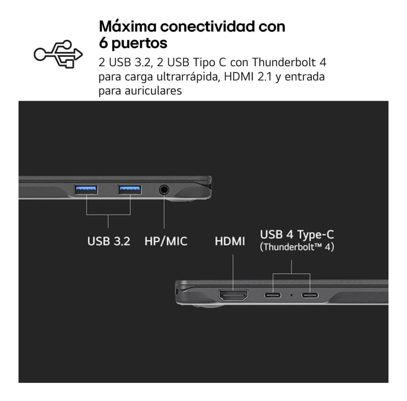 LG Gram 15Z80T-G.AU88B. Tipo de producto: Portátil, Factor de forma: Concha. Familia de procesador: AMD Ryzen AI 7, Modelo del procesador: 350, Frecuencia del procesador: 2 GHz. Diagonal de la pantalla: 39,6 cm (15.6"), Tipo HD: Full HD, Resolución de la pantalla: 1920 x 1080 Pixeles. Memoria interna: 32GB, Tipo de memoria interna: LPDDR5x-SDRAM. Capacidad total de almacenaje: 1TB, Unidad de almacenamiento: SSD. Modelo de adaptador gráfico incorporado: AMD Radeon 860M. Sistema operativo instalado: Windows 11 Home. Color del producto: Negro