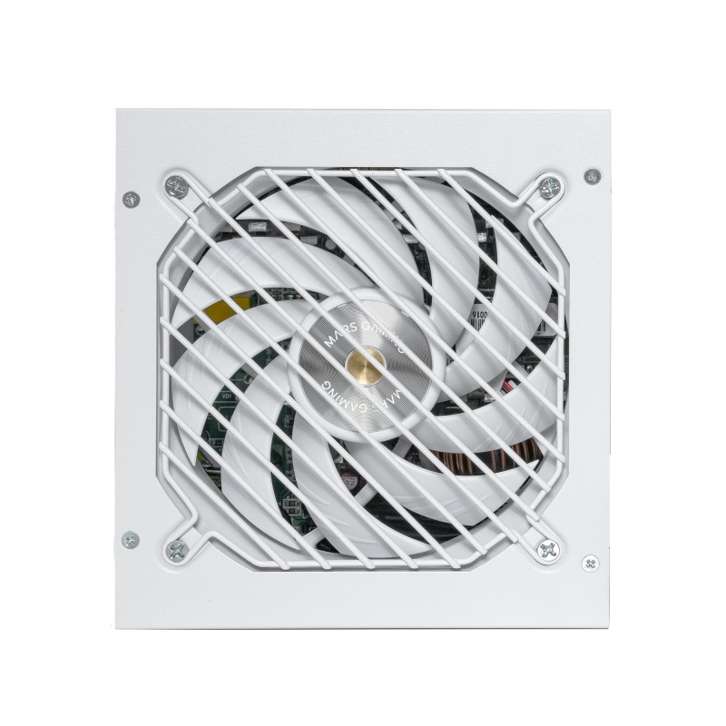 Mars Gaming MPB1000SIW. Potencia total: 1000 W, Voltaje de entrada AC: 220 - 240 V, Frecuencia de entrada AC: 47 - 63 Hz. Alimentador de energía para tarjeta madre: 24-pin ATX, Tipo de cableado: No modular. Utilizar con: PC, Factor de forma de fuente de alimentación (PSU): ATX, Certificación 80 PLUS: 80 PLUS Gold. Color del producto: Blanco, Tipo de enfriamiento: Activo, Diámetro de ventilador: 12 cm. Cables incluidos: CPU, PCIe, Peripheral (Molex), SATA