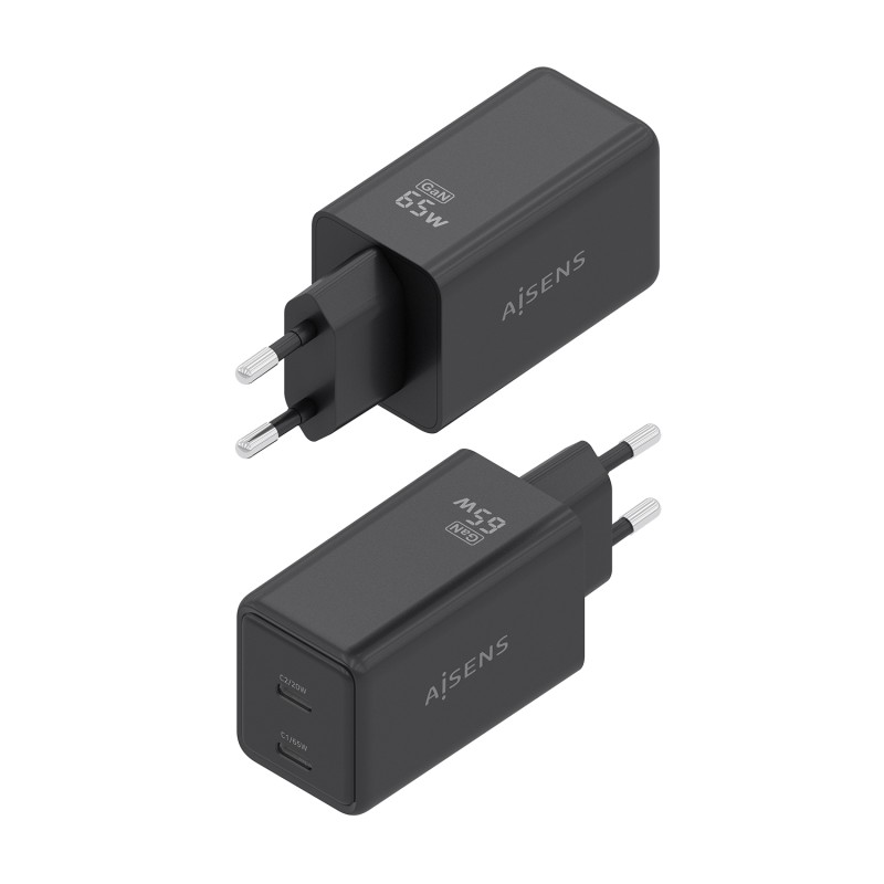 AISENS Cargador GaN 65W, 2xUSB-C PD3.0 QC4.0, Negro