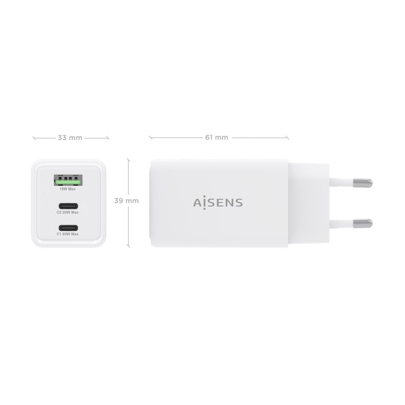 Mayoristas, proveedores y distribuidores de AISENS Cargador GaN 65W, 2xUSB-C PD3.0 QC4.0, 1xUSB-A QC3.0, Blanco