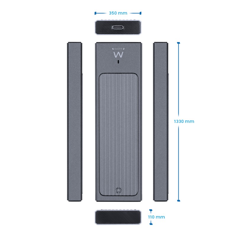 Ewent EW7022. Tipo de producto: Caja externa para unidad de estado sólido (SSD). Número de unidades de almacenamiento compatibles: 1, Tamaño de la unidad de almacenamiento: M.2, Interfaces de disco de almacenamiento soportados: M.2, Capacidad máxima de almacenaje: 4TB. Velocidad de transferencia de datos: 10 Gbit/s. Color del producto: Gris. Conector USB: USB Tipo C
