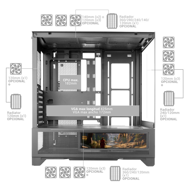 Diámetro de ventiladores inferiores secundarios soportados 120 | 120 |