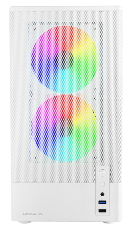 Mars Gaming MC-ONYXW. Factor de forma: Mini Tower, Tipo: PC, Color del producto: Blanco. Ubicación de fuente de alimentación: Fondo, Factores de forma de la fuente de alimentación compatibles: ATX. Ventiladores frontales instalados: 2x 120 mm, Diámetro de ventiladores frontales soportados: 120 mm, Ventiladores traseros instalados: 1x 120 mm. Tamaños de disco duro soportados: 2.5,3.5". Ancho: 200 mm, Profundidad: 340 mm, Altura: 395 mm